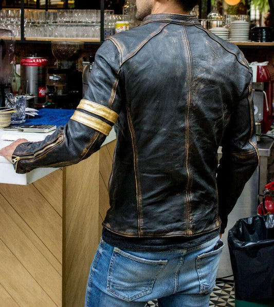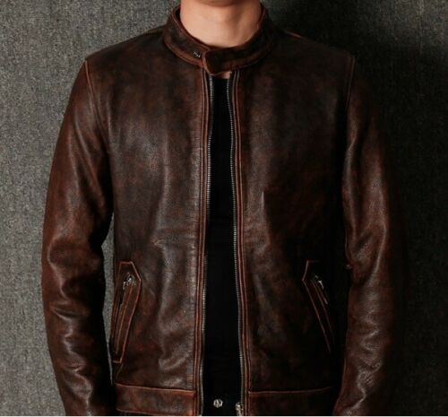 Men's Biker Vintage Brown Café Racer Distressed Genuine Leather Jacket