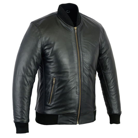 Men's 70'S Bomber Leather Jacket Black Street Inspired Retro Real Sheep Leather