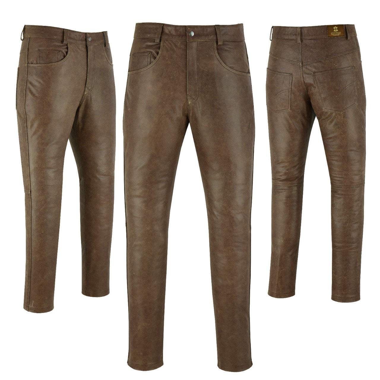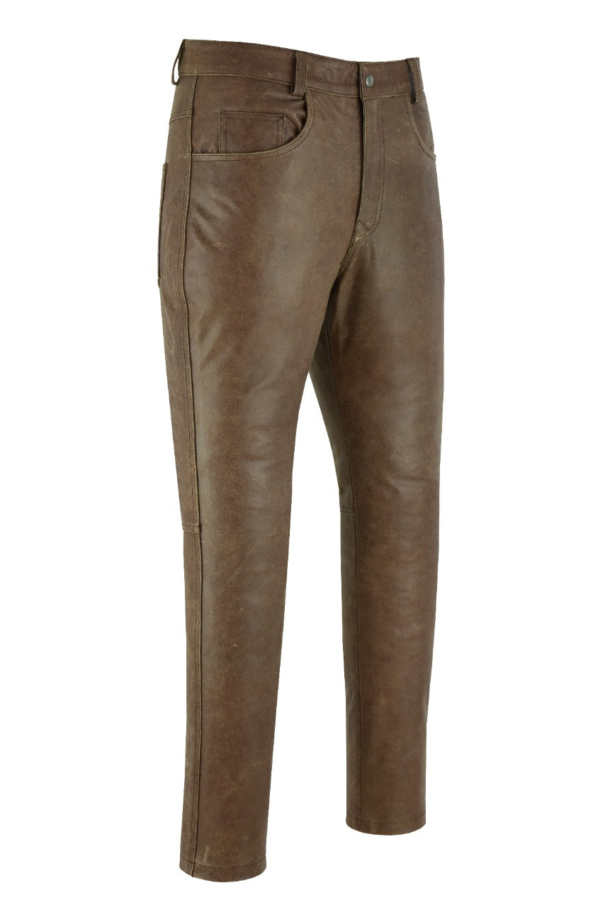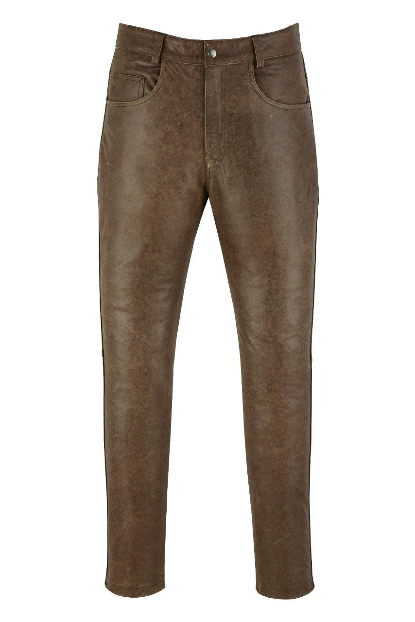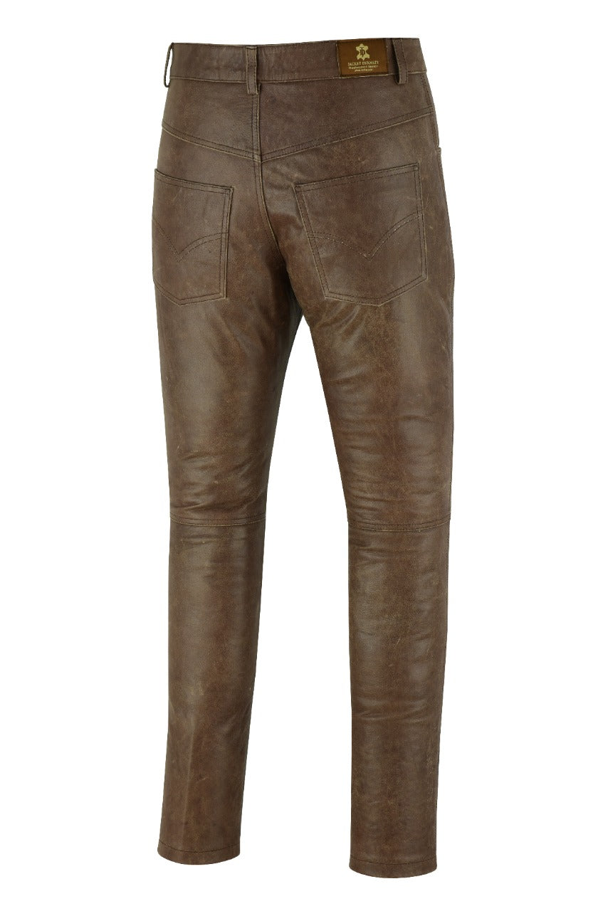 MENS VINTAGE DISTRESSED BROWN LEATHER COWHIDE MOTORCYCLE JEANS TROUSERS