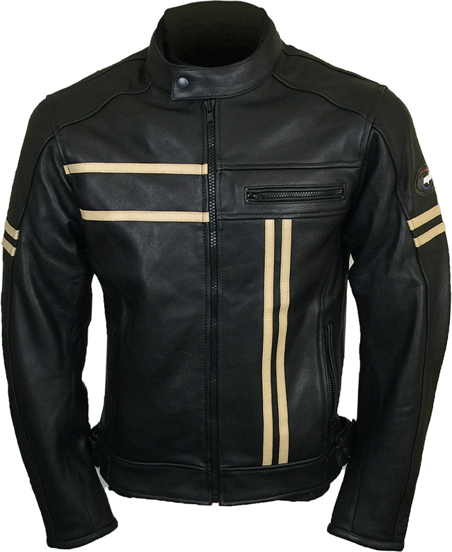 Leather Vintage Cruiser Retro Motorbike Motorcycle Jacket Crafted from real leather with a real vintage look, this motorcycle jacket was made for the Harley biker. Beautifully styled with adjustable Velcro strap on Cuffs and waist, a must have motorbike jacket for anyone wanting the old school look.