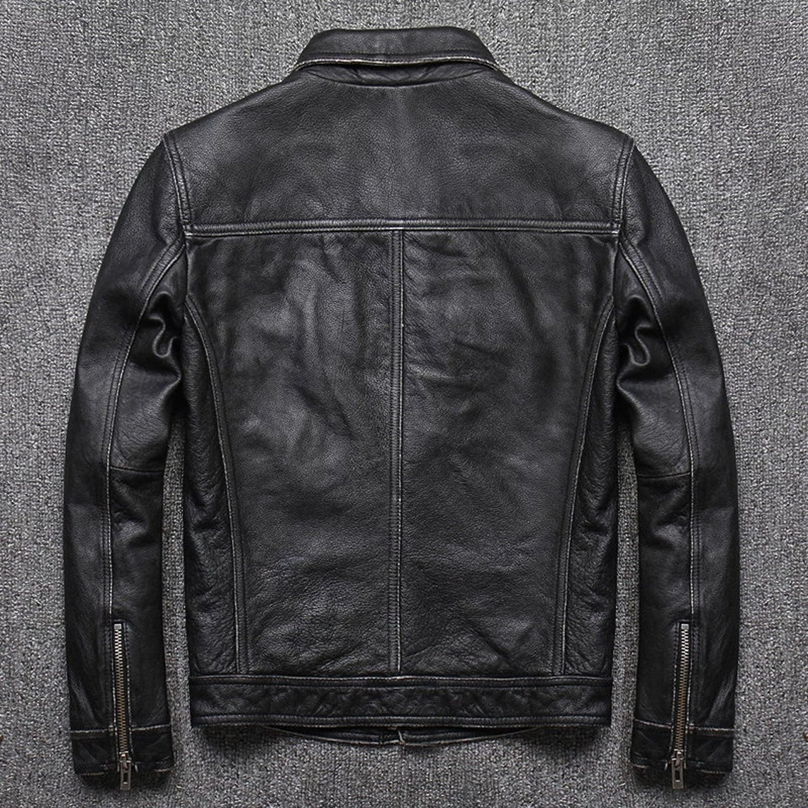 Mens Natural Cowhide Leather Slim Fit Jacket Vintage Style Butter Soft Leather