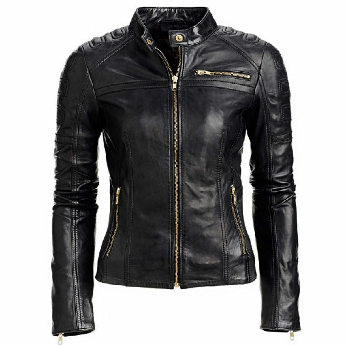 New Women Ladies Jacket Biker Black Moto Slim Fit lambskin Leather Jacket Black