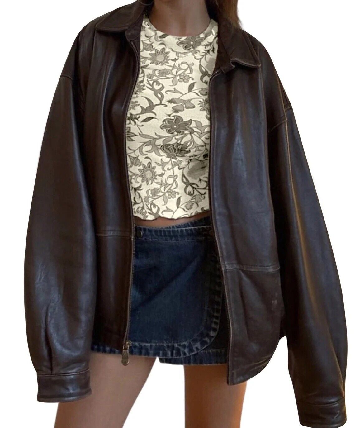 Women's Handmade Oversized Real Leather Vintage Brown Bomber Jacket